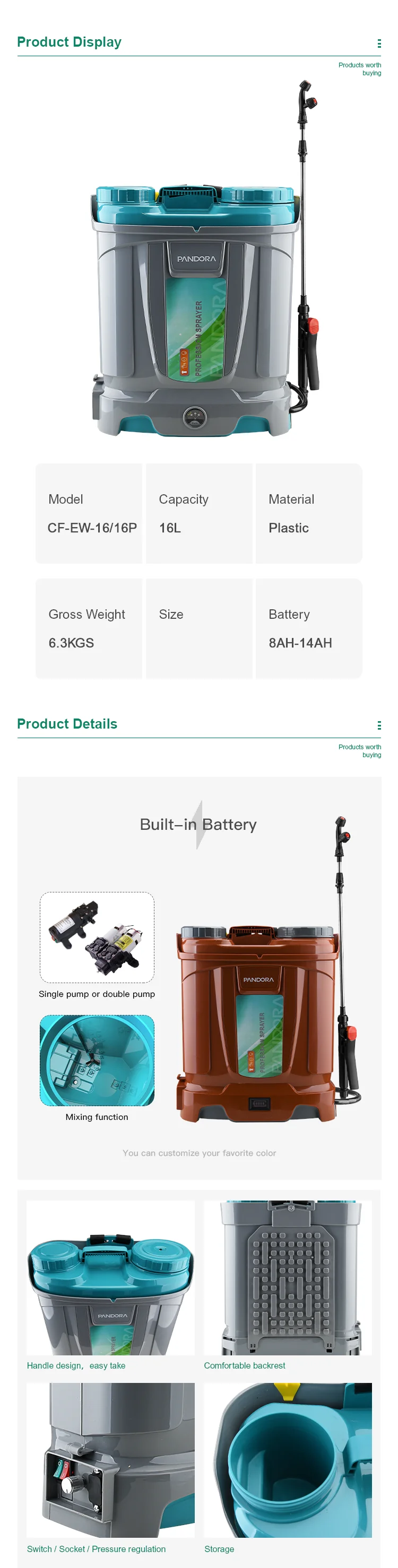 Taizhou Pandora Agricultural Backpack Electric Sprayer Electric Garden Pump Sprayer 16L