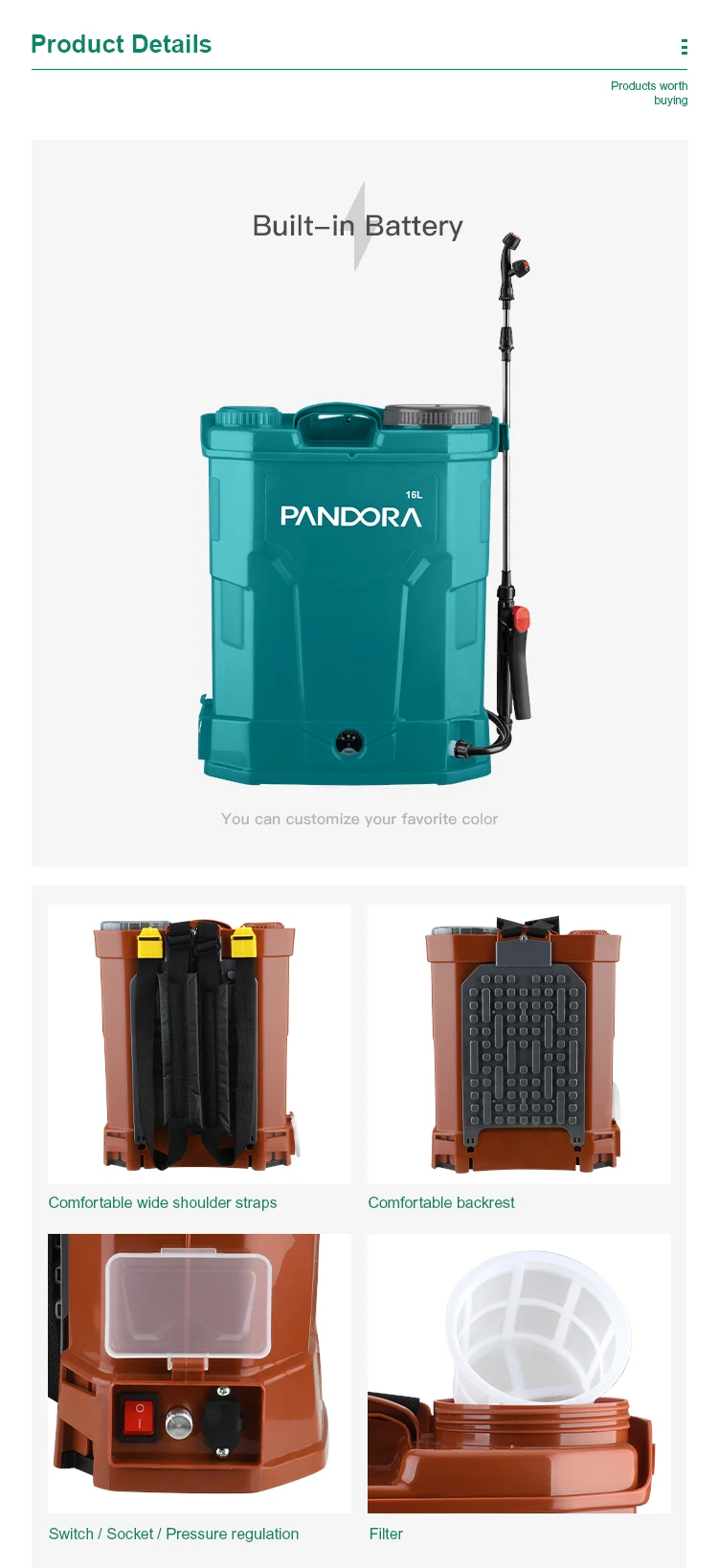 Taizhou Pandora Agricultural Backpack Electric Sprayer Electric Garden Pump Sprayer 16L