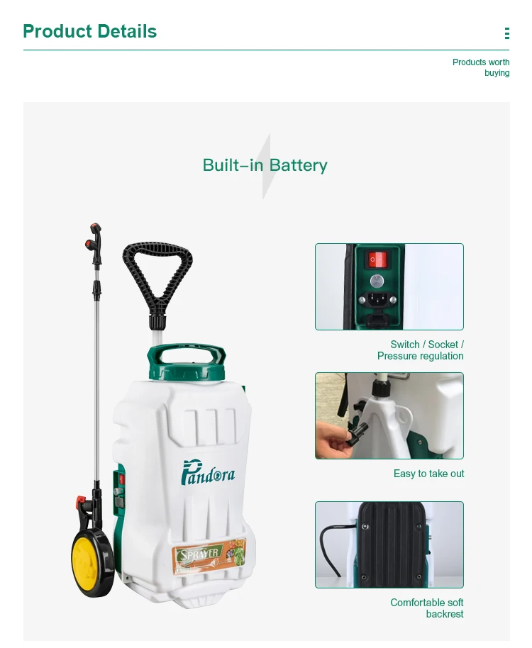 Pandora 12/16/20L 12V battery operated spray pump rechargeable electric knapsack trolley type agricultural sprayer