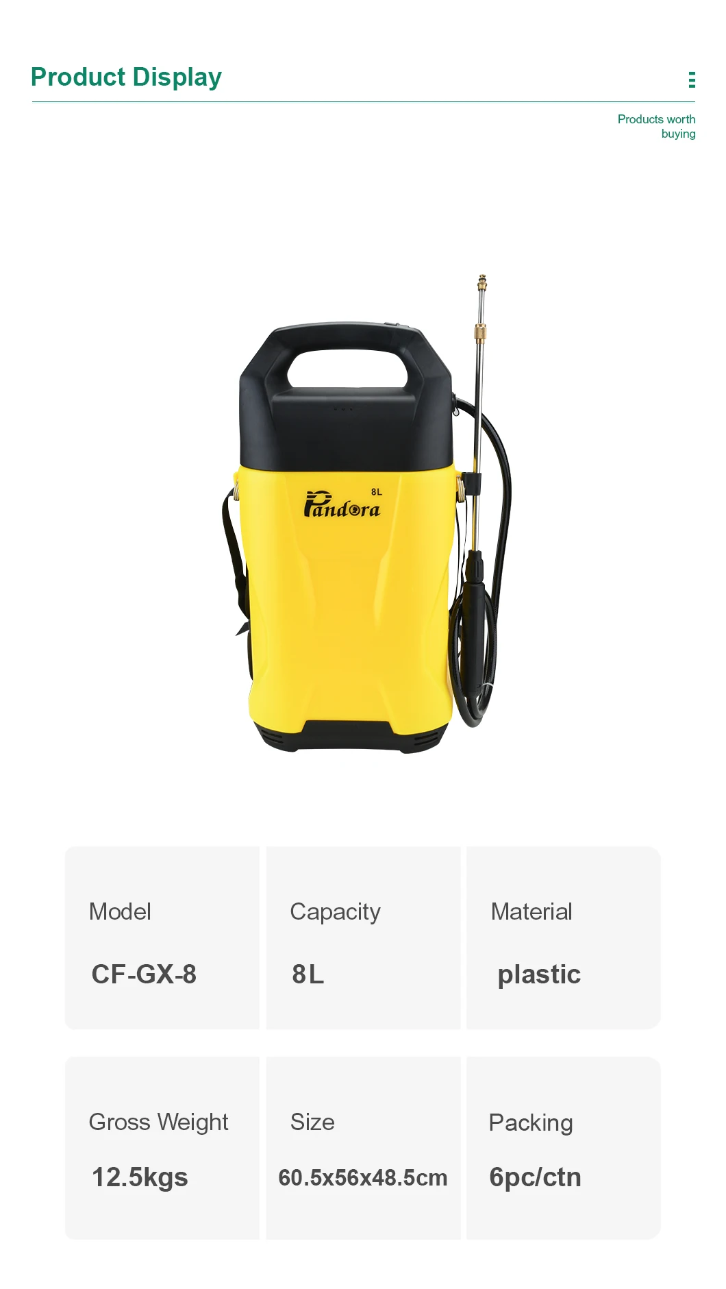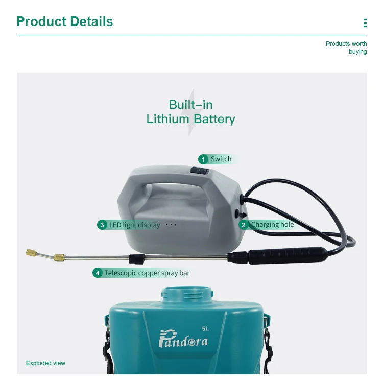 Pandora 8L Knapsack Electric Sprayers With Lithium Battery Portable Sprayer for Outdoor Garden
